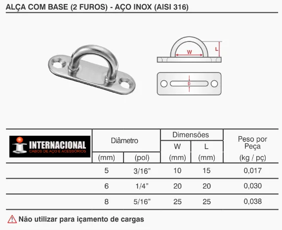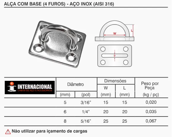 Fabricada em aço inoxidável AISI 316, resiste à corrosão mesmo em ambientes marítimos e industriais agressivos. Sua estrutura reforçada proporciona fixação confiável em cabos e correntes, contribuindo para operações seguras e estáveis.
