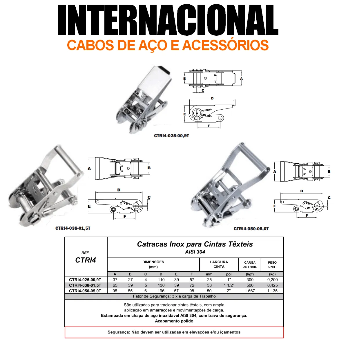 É fundamental destacar que essas catracas não devem ser utilizadas para elevação ou içamento de cargas, sendo exclusivas para ancoragem horizontal.