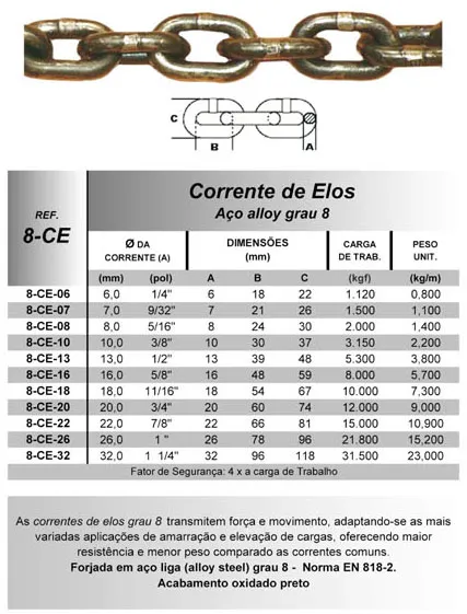 Eleve a performance das suas operações com correntes de elos Grau 8!