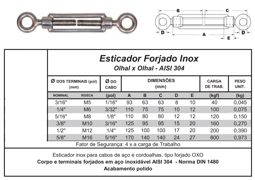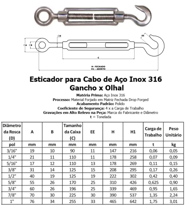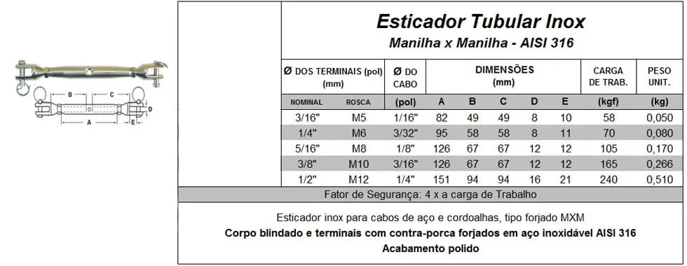 Garanta tensionamento preciso e durabilidade máxima com esticadores inox tipo forjado MXM!
