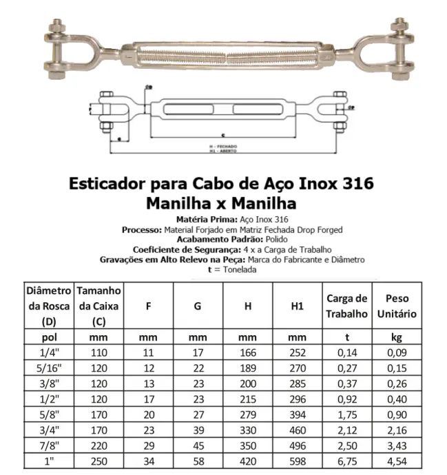 Seu acabamento polido confere excelente estética e proteção adicional contra oxidação. Essencial em operações que requerem segurança e precisão, o esticador MXM entrega performance confiável e longa vida útil. Invista em qualidade para suas amarrações.