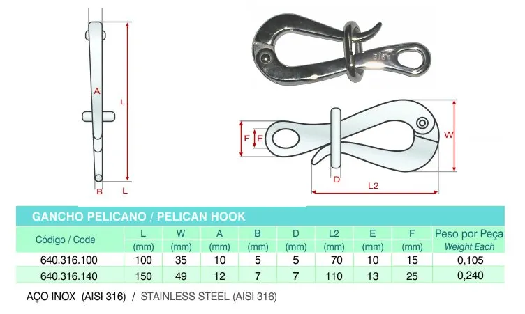 Conecte com rapidez e segurança utilizando o gancho pelicano em aço inox!